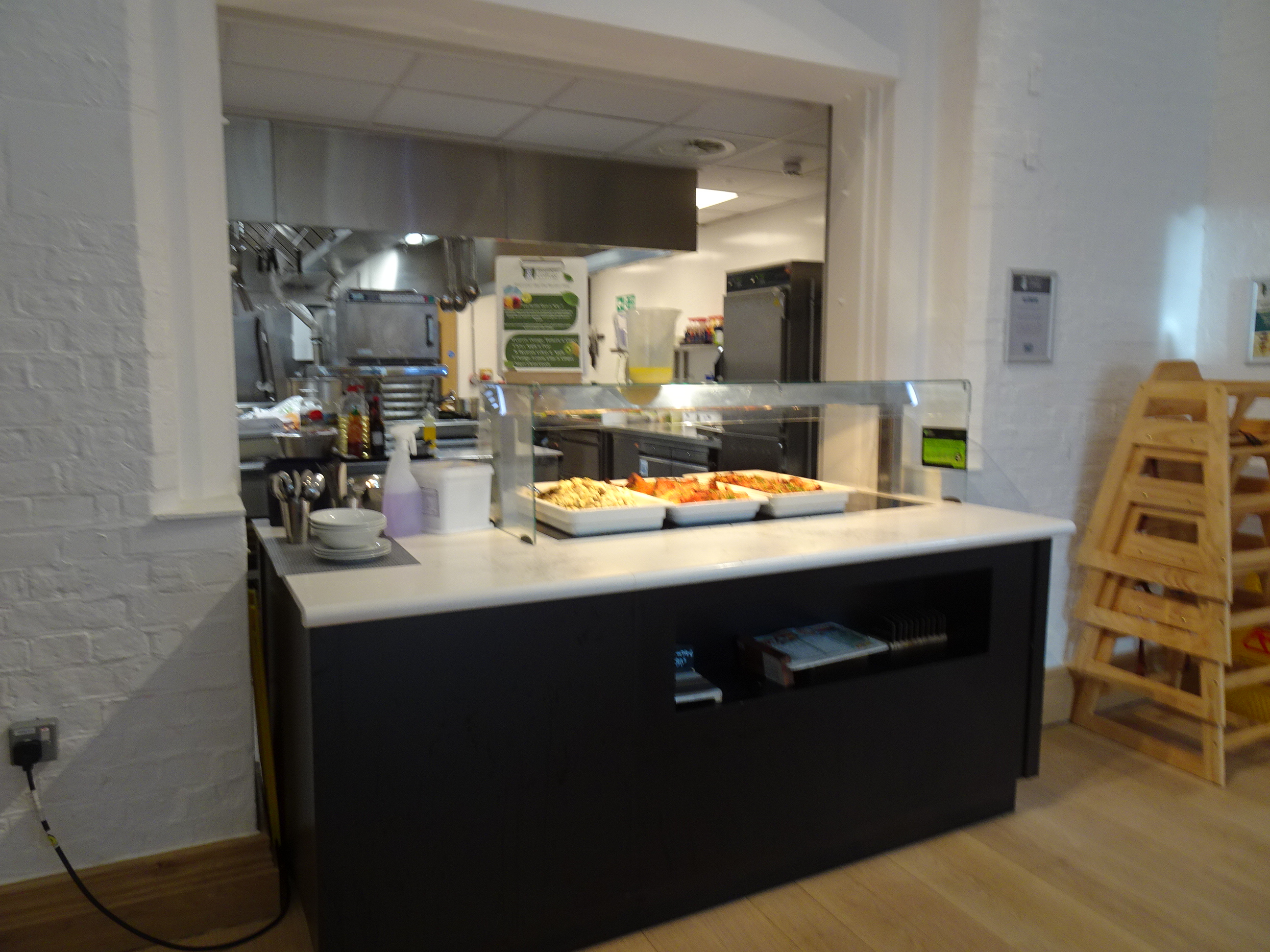 - The hot food counters are 92 cm high; the cold food is on tables which are 75 cm high