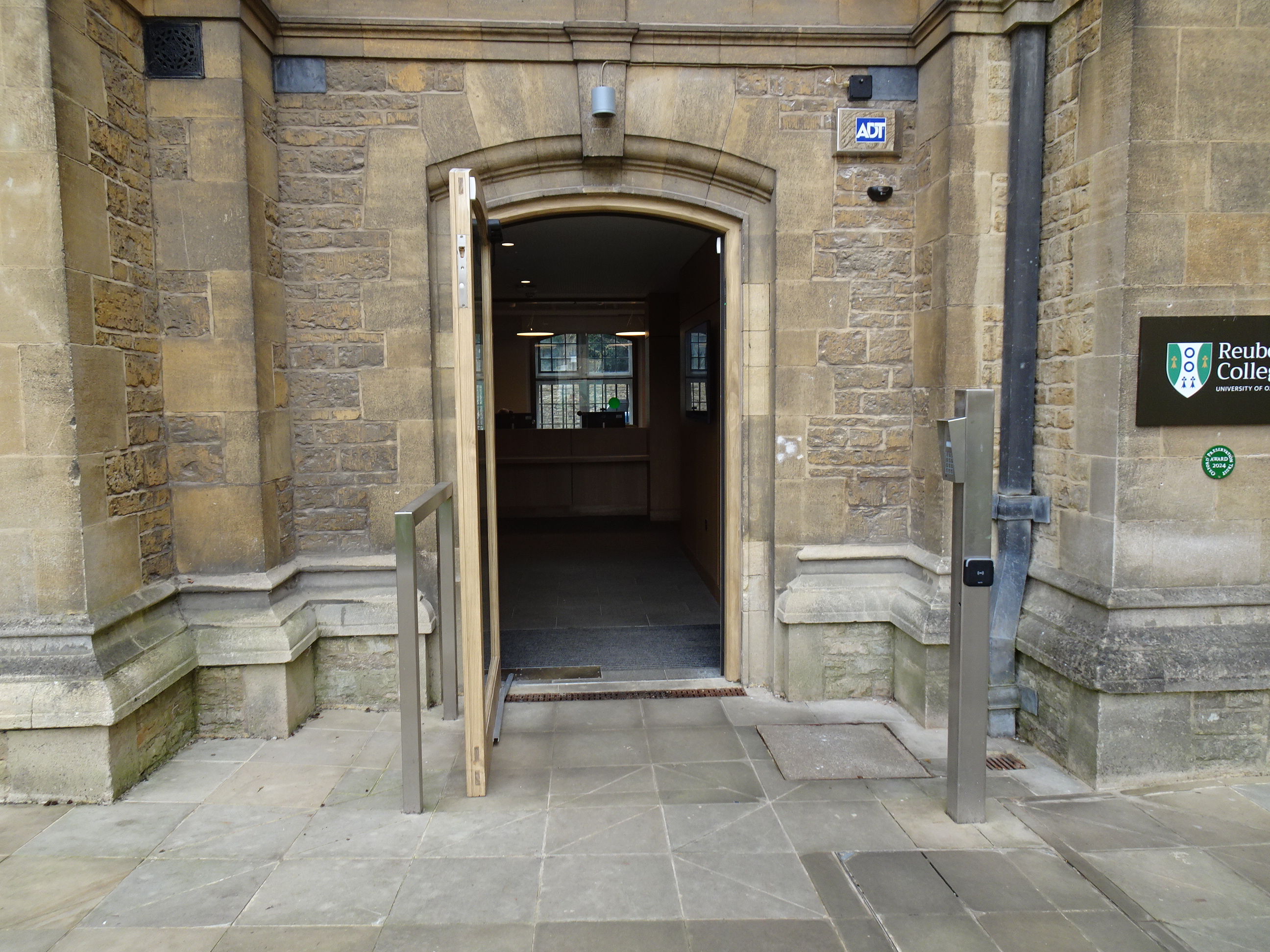 - This entrance is only used when the college is holding certain events; at these times the doors are staffed