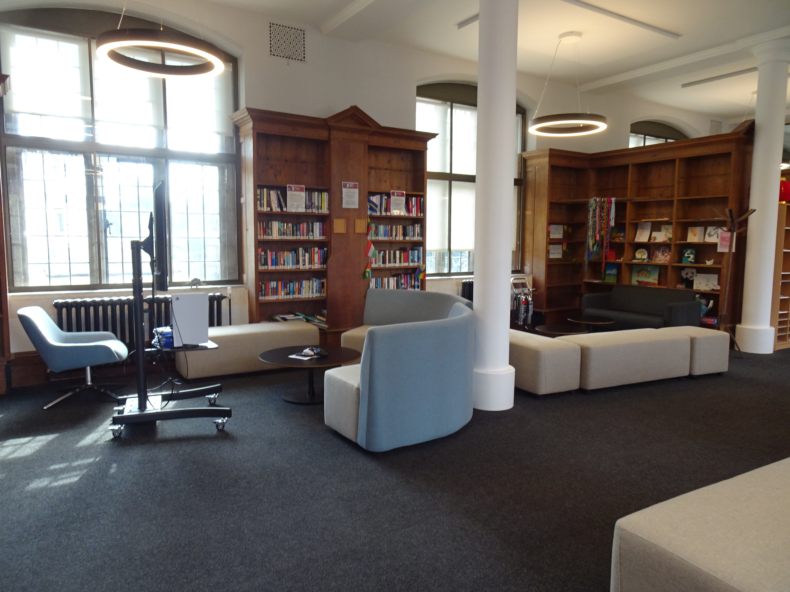 - Both sets of double doors into the library are powered; the doors open to 138 cm