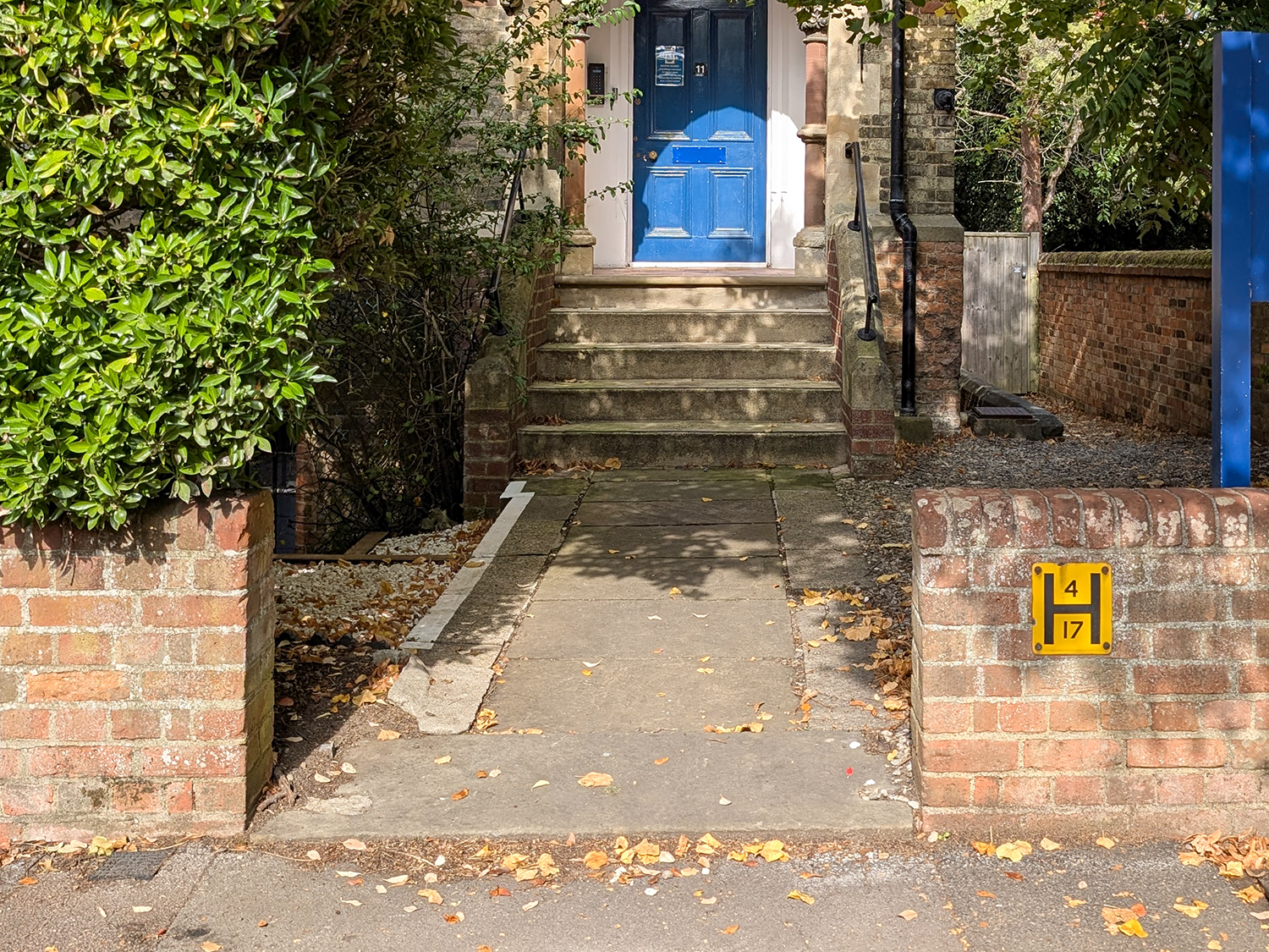 - There is a raised threshold from the pavement on to the path leading to the entrance steps