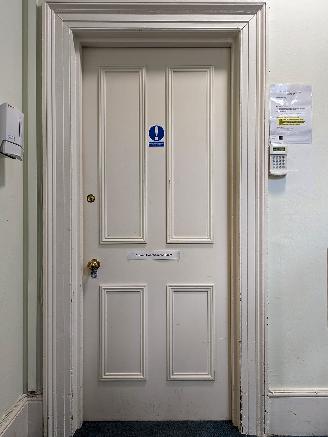 - The door is manual and secure. There is an intercom and card reader to the left of the door. There is a swipe card reader here but it is not in use - you need to tap your card at the bottom of the intercom