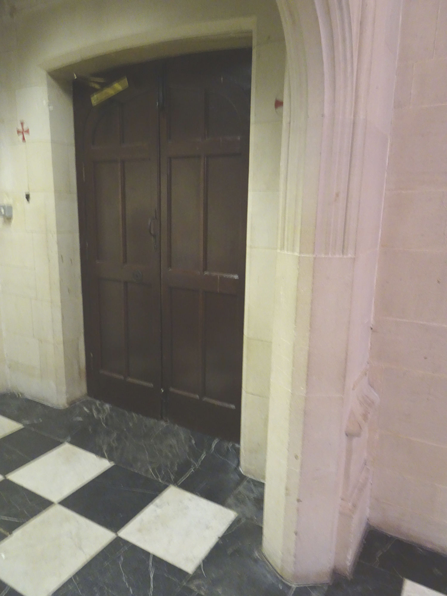 On the opposite side of the passage is the entrance to the chapel. This is beyond the porters lodge on your right.