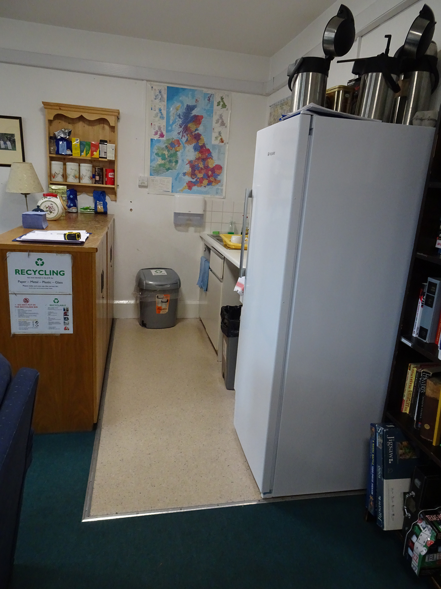 A portable ramp is available to allow access down the step near the porters lodge. There is then level access to the MCR from the main corridor. There is space to accommodate wheelchair users. Unfortunately the kitchen area is not accessible.