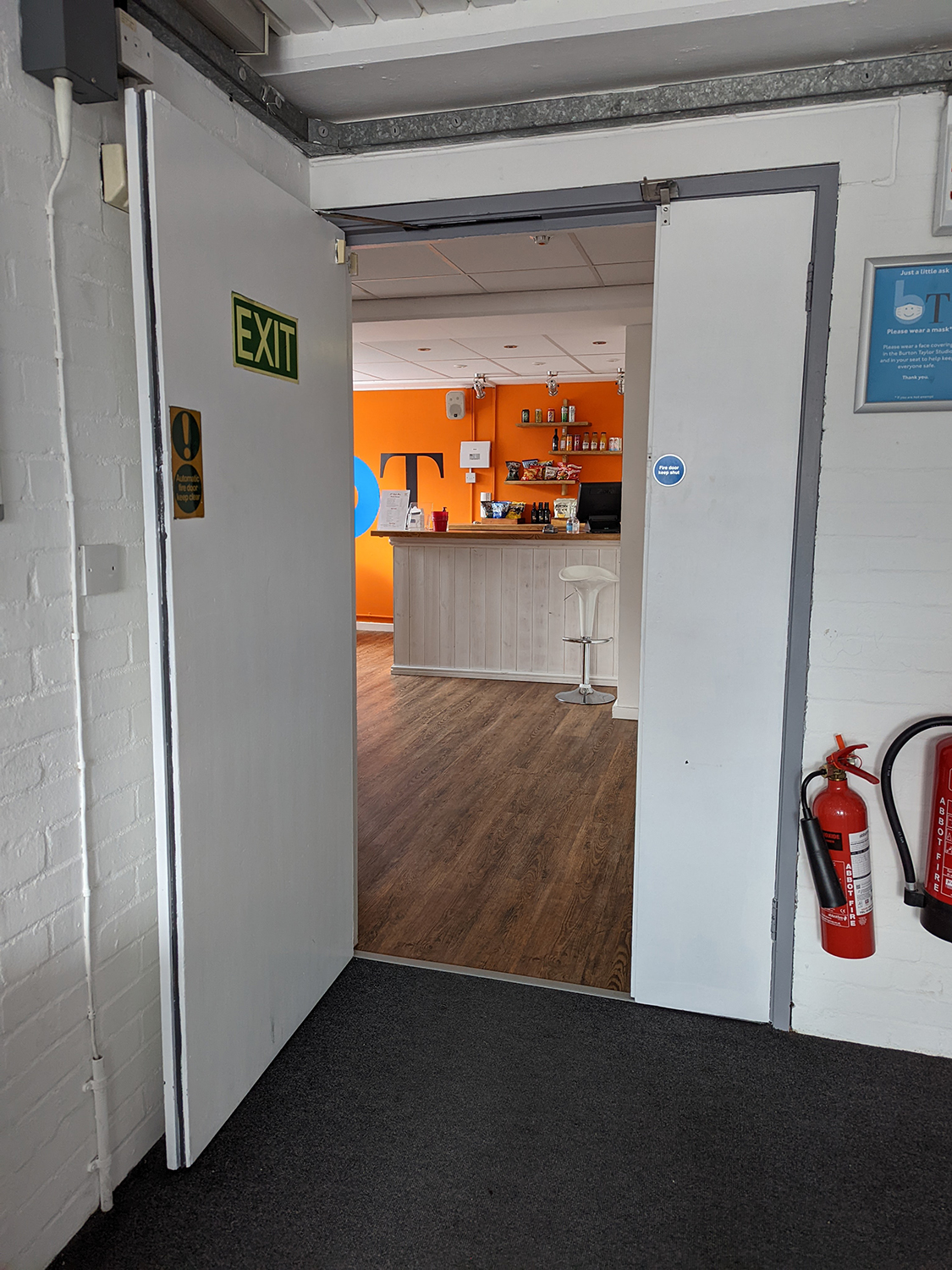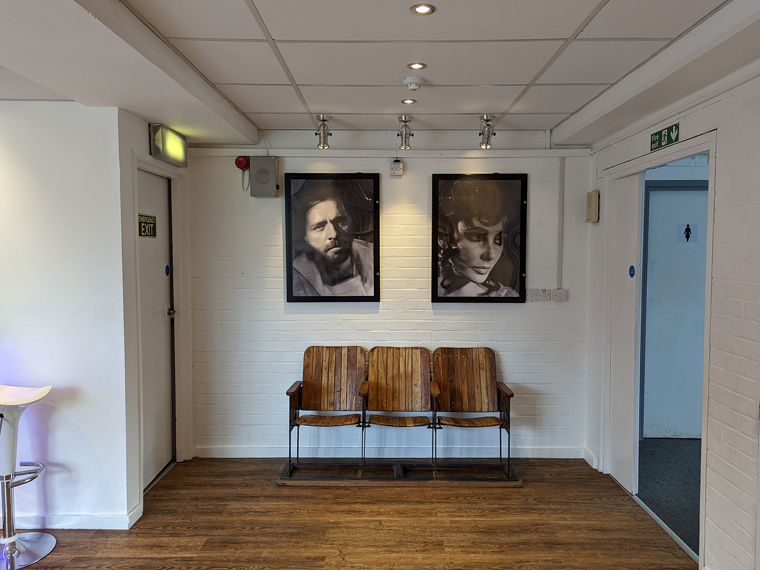 Once inside, there is a small entrance lobby with stairs leading upstairs to the bar and theatre space.