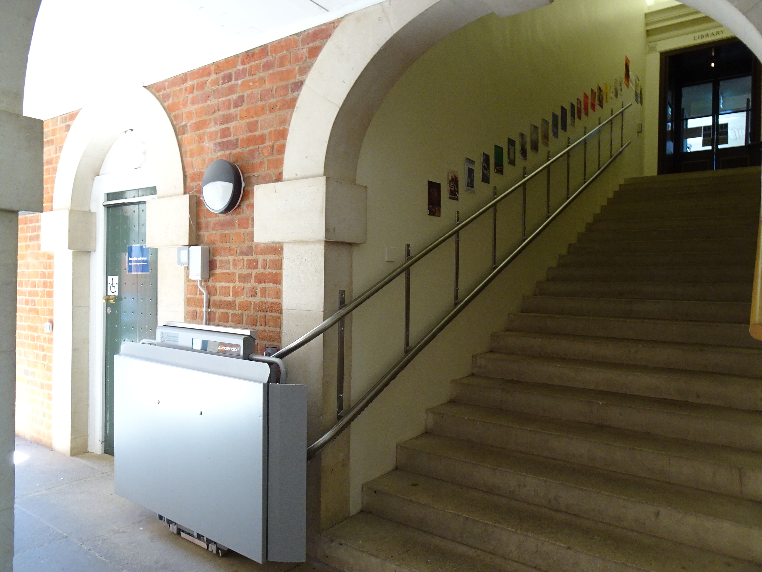 - This lift runs up the stairs to the library main entrance