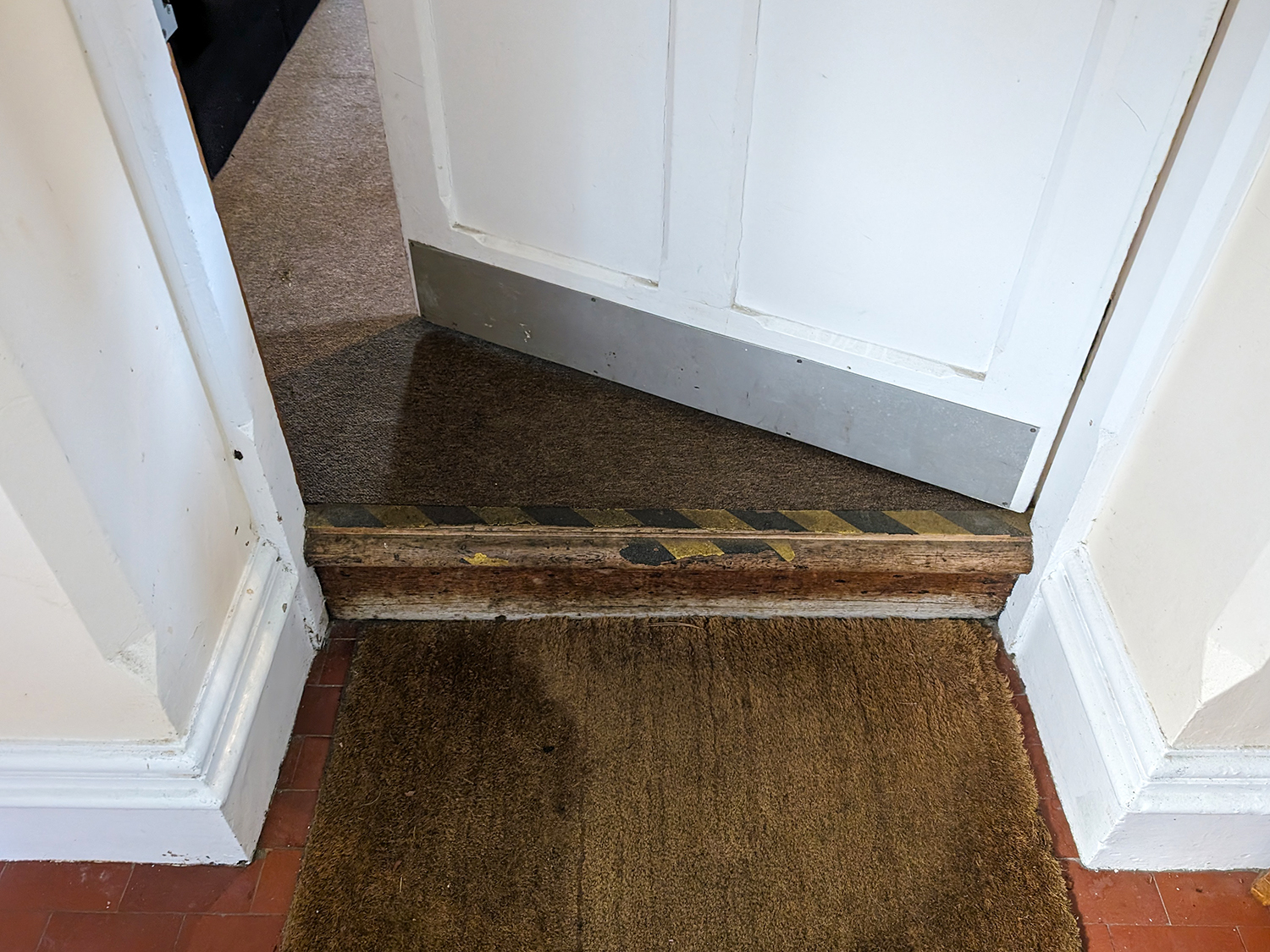 - There is a small lobby inside with a second entrance door - this is manual, lightweight, and has a clear width of 95cm. As the door opens there is 1 step up into the building.