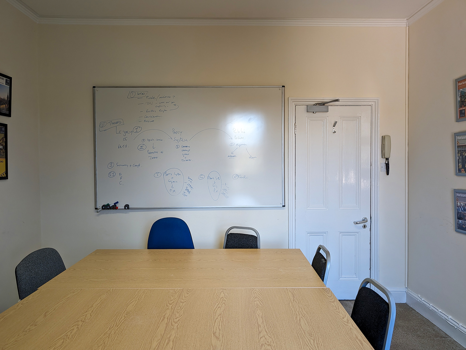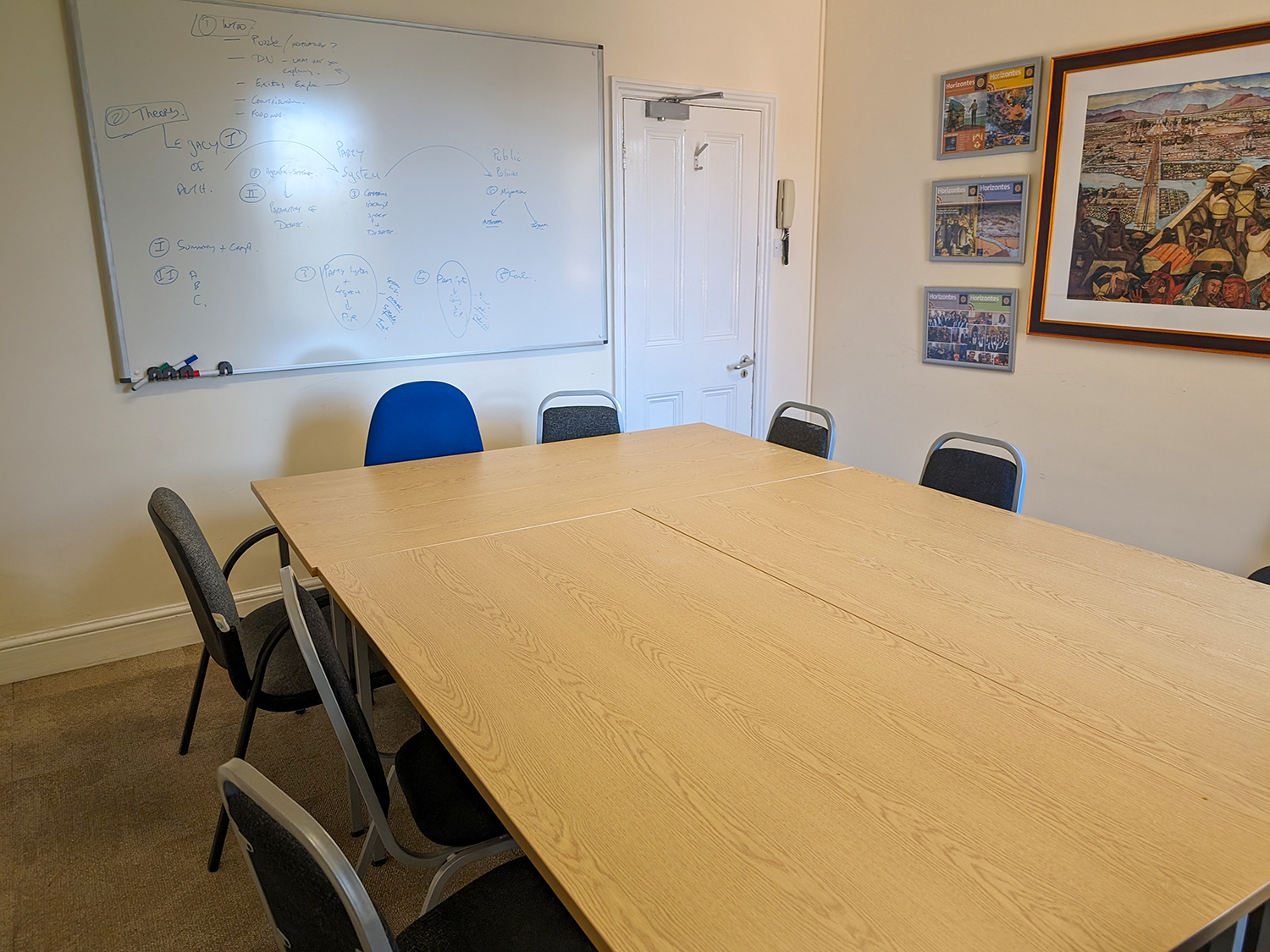 - Furniture can be arranged as needed - the photos below show a large central table with chairs around it. Chairs can also be set out in rows if a lecture is taking place.