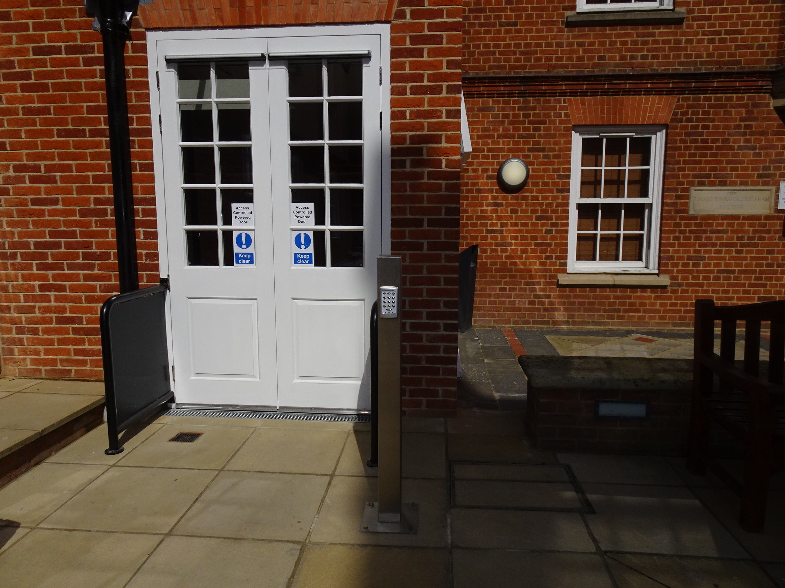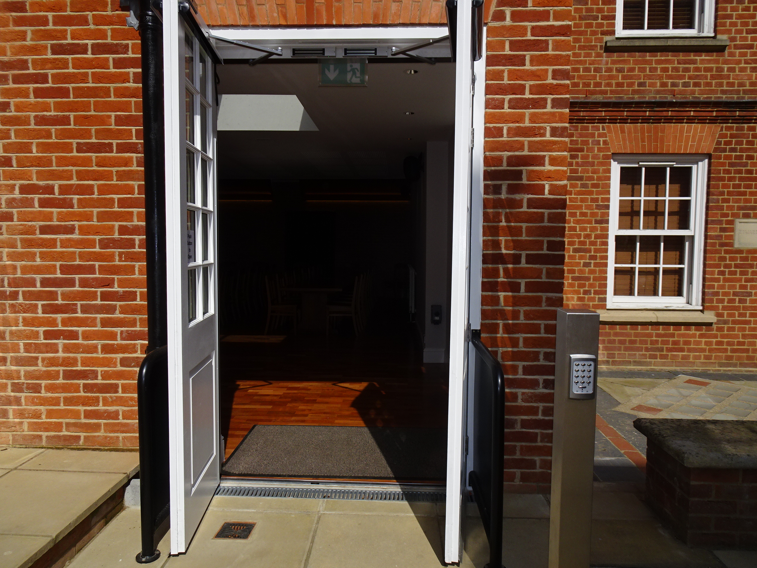 • The main entrance is reached by using steps or the platform lift at the accessible entrance