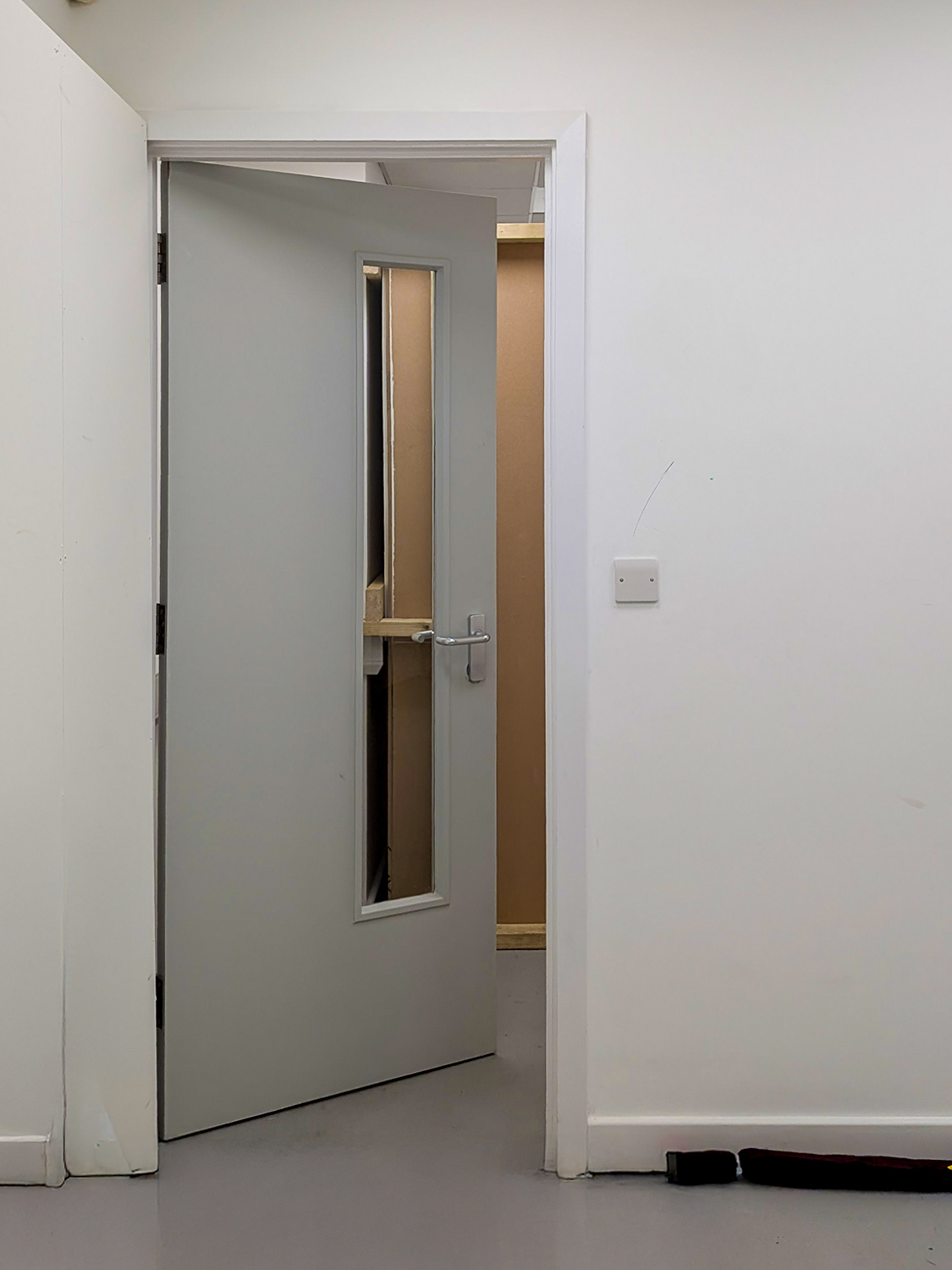 - There are 2 doors into the studio. Both doors are usually held open, and both have a clear width of 90cm.