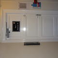 This is on the second floor. The underside of the tables is 71 cm from the floor. The door opens to 84 cm. The door knob is 100 cm from the floor. The access control is 113 cm from the floor. The door lock is 124 cm from the floor.