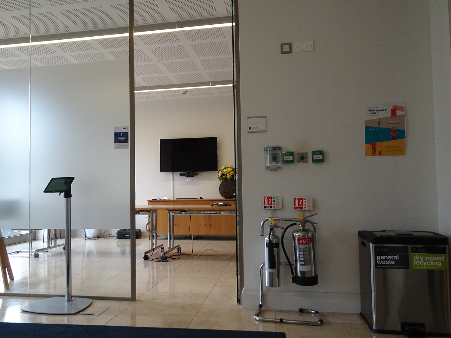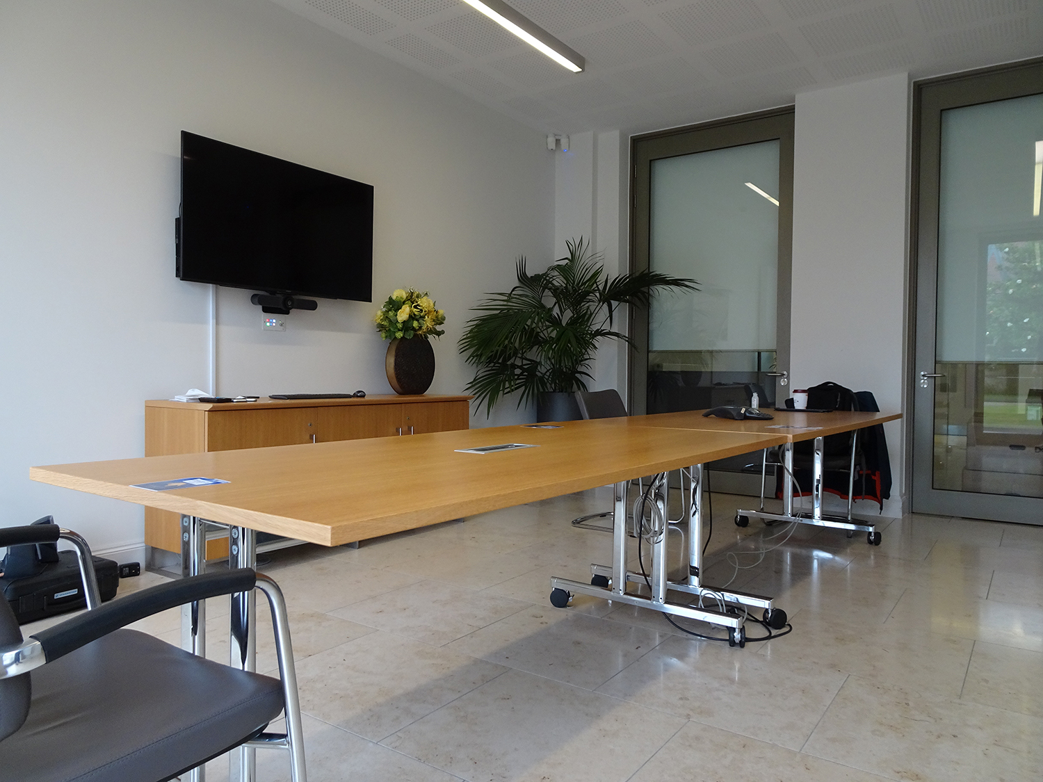 There are two meeting rooms on the ground floor near the main entrance. There is step free access into both rooms. The doors are both 88 cm wide and are light to use. There is plenty of manoeuvring space in both rooms. There is a central table in both rooms with chairs that can be rearranged as needed.