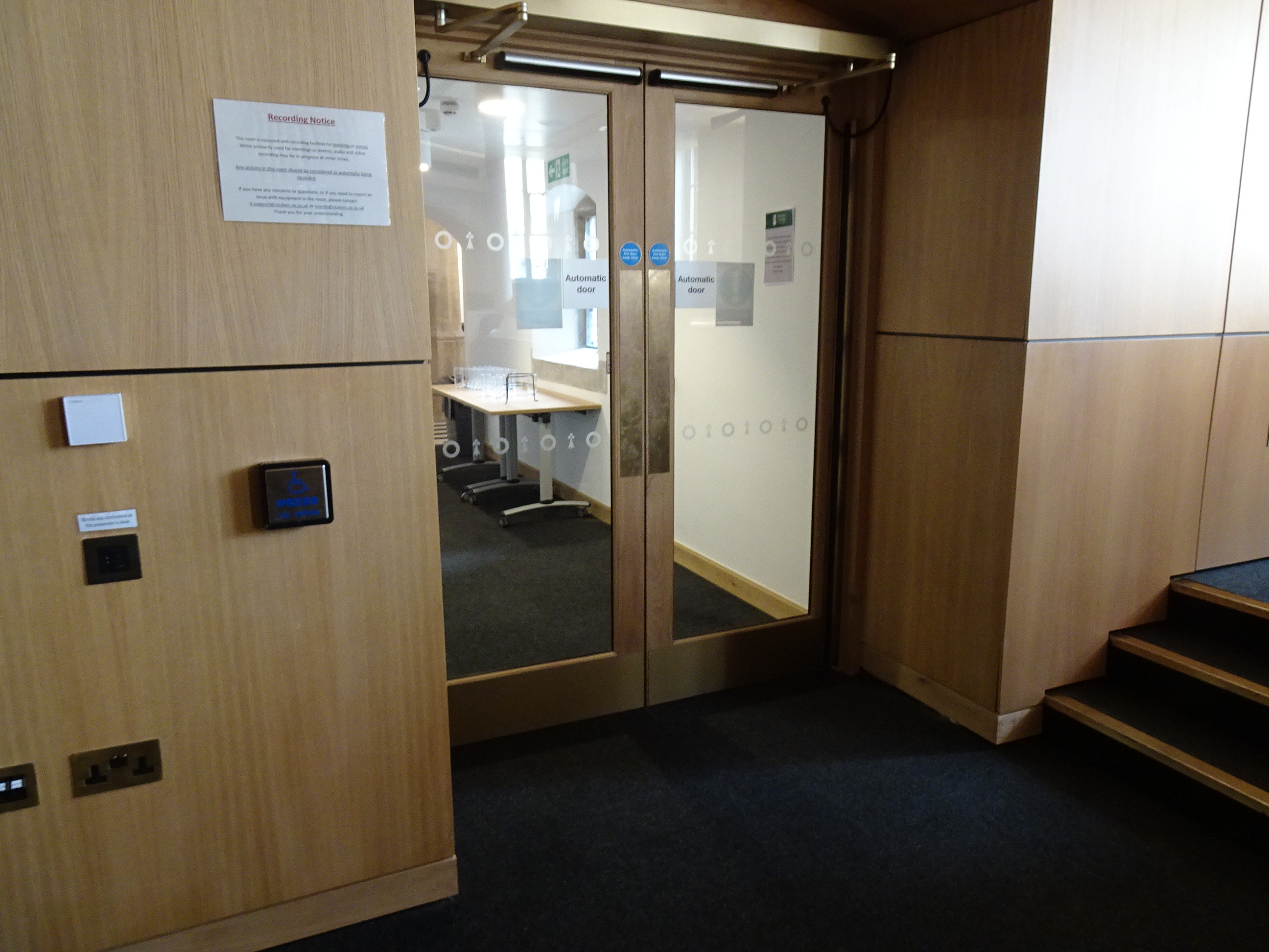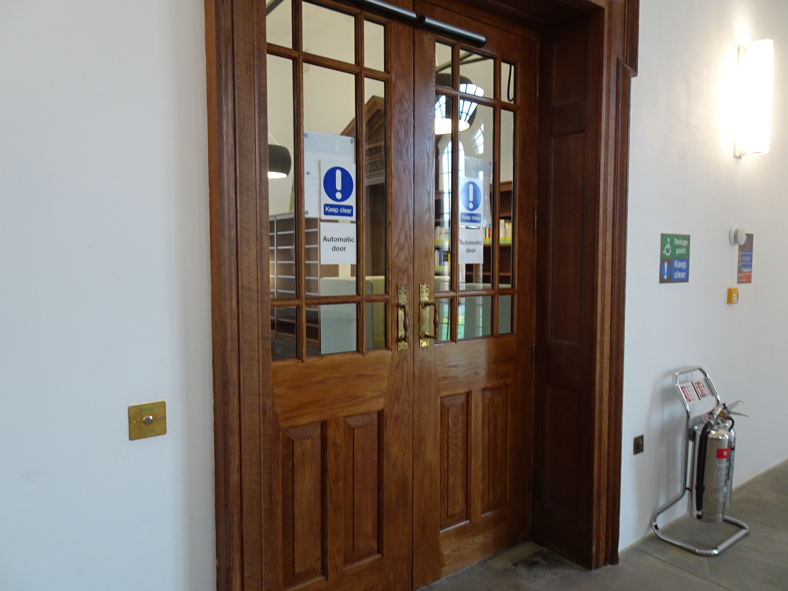 - Both sets of double doors into the library are powered; the doors open to 138 cm