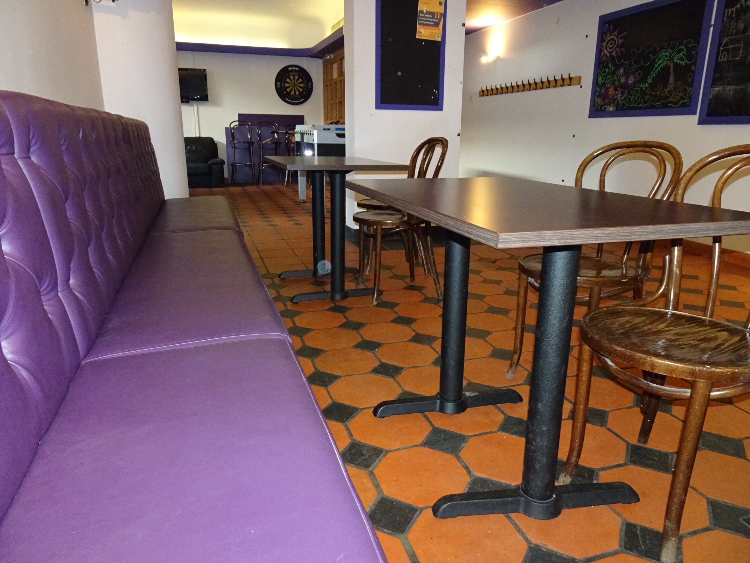 - The counter has a foot rail which is 23 cm high and projects 13 cm out from the bar
