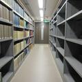 The Mackerras Reading Room is connected to a central gallery of shelving which runs around the whole building.  The door to access the gallery is to one side of the enquiry desk in the Mackerras Reading Room, and staff at the desk will open it for you.  There is quite a steep ramp as you come through the door, so please take care.  The inner wall of the gallery is lined with bookshelves, including recessed alcoves.  The lighting level is good, and there is plenty of space to move around, but some of the shelves might be high to reach for people using wheelchairs.  If you are sensitive to heights, please be aware that the outer wall of the gallery is glass, so you can see down to the Blackwell Hall below.